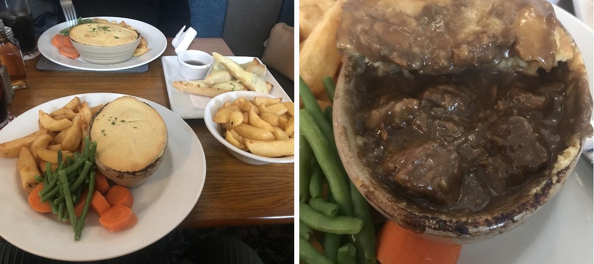 19th FEBRUARY 2025 ‘Wandering Wednesday’ this week took Hubby Neil and I to a place we’ve never been before. We took a little drive out just up the East Lancs to St. Helens, to a proper old pub called ‘The Colliers Arms’, the food was very similar to a few weeks ago at the Nevison Country Inn, delicious home cooked food and not a frozen morsel anywhere. The three ladies running around had everything under control, the pub is small on the in side but every corner was put to use, the car park was packed and that to me says a lot about the food! Waiting time was just cooking time, all the food was fresh and piping hot. We skipped the starters with looking at the plates when we entered, a starter for us definitely wasn’t needed! Entrées: We saw the dish of the lady next to us and decided we wanted the same! Homemade steak and onion pie, with thick chunks of steak, onions, rich gravy covered with homemade short crust pastry, accompanied with thickly cut fresh carrots and green beans, perfectly cooked Al dente, along with chunky, hand chopped, proper chips, crispy on the outside and lovely and fluffy on the inside….. we had a side of garlic ciabatta, loaded with melted cheese, a small ramekin of olive oil and balsamic for dipping, an extra bowl of chunky chips. This place is a little gold mine and a country pub hidden little gem, it’s most definitely a place to try, go early to avoid not getting a seat! Would we go back? I think the above has already answered that!!!